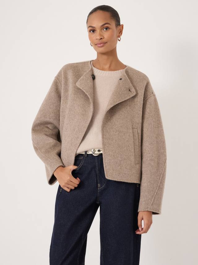 HUSH Collarless Pure Wool Jacket, Oatmeal Marl